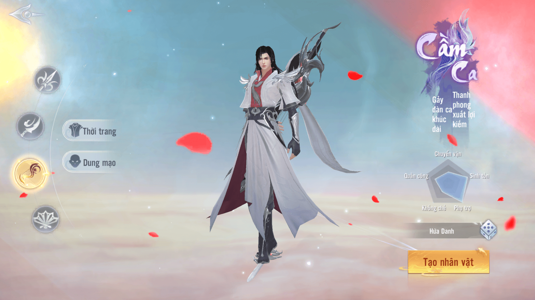 Một nam nhân vật tiên hiệp cầm đàn cổ, sử dụng âm nhạc để điều khiển năng lượng và tạo ra luồng kiếm khí vô hình, sắc bén và chí mạng. Với vẻ ngoài điềm tĩnh và thanh tao, Cầm Ca là hiện thân của sự kết hợp giữa nghệ thuật và võ công trong thế giới tiên hiệp.