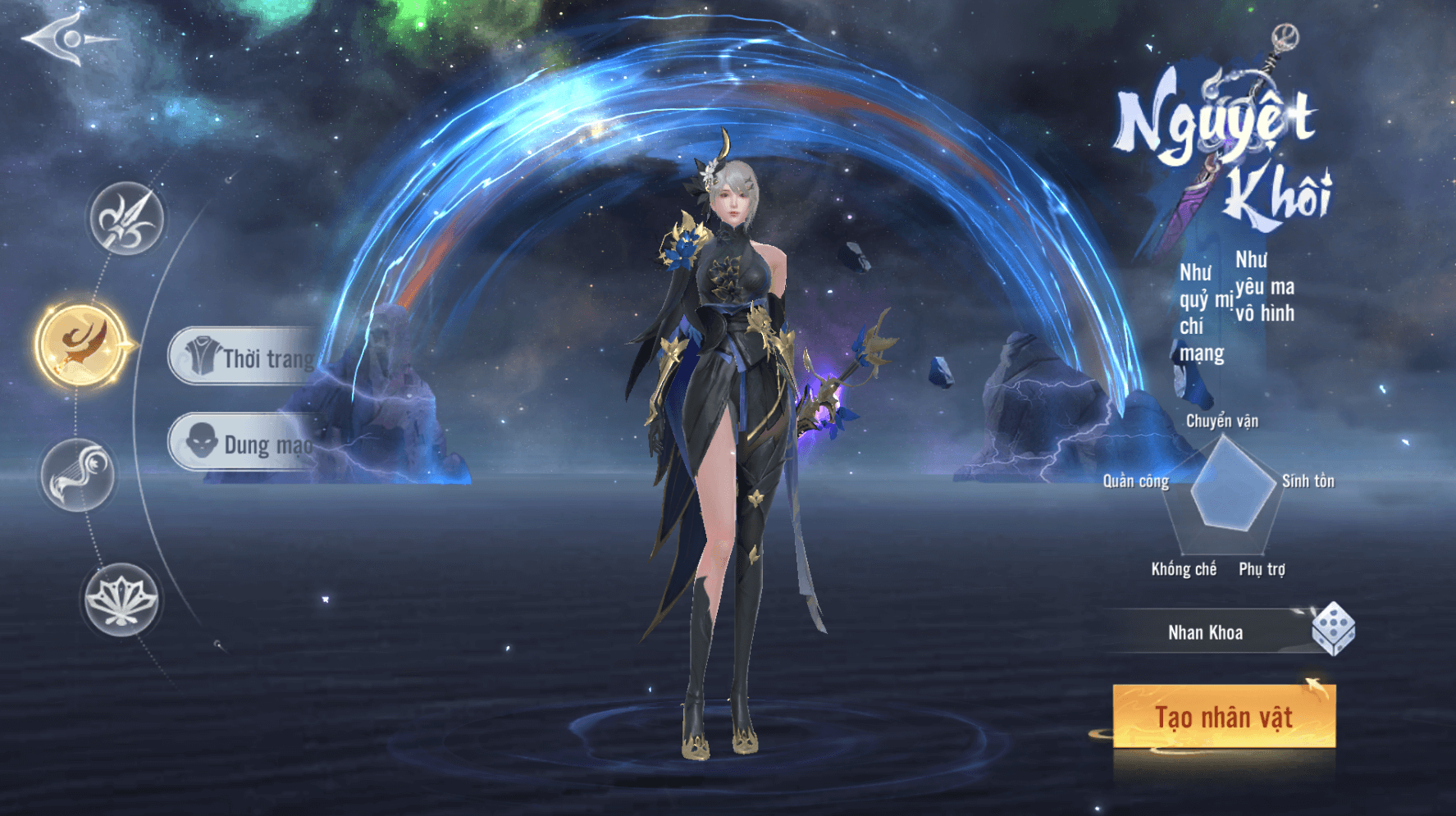 Với danh hiệu Dị Vọng Lượng Vô Hình, là một nữ nhân vật tiên hiệp bí ẩn và sắc sảo. Cầm thanh kiếm dài sắc bén, di chuyển nhanh như gió, và tấn công chí mạng khiến đối thủ không kịp phản ứng. Vẻ đẹp lộng lẫy kết hợp với khả năng vô hình và sức mạnh phi thường khiến Nguyệt Khôi trở thành một sát thủ vô hình trong thế giới thần ma.